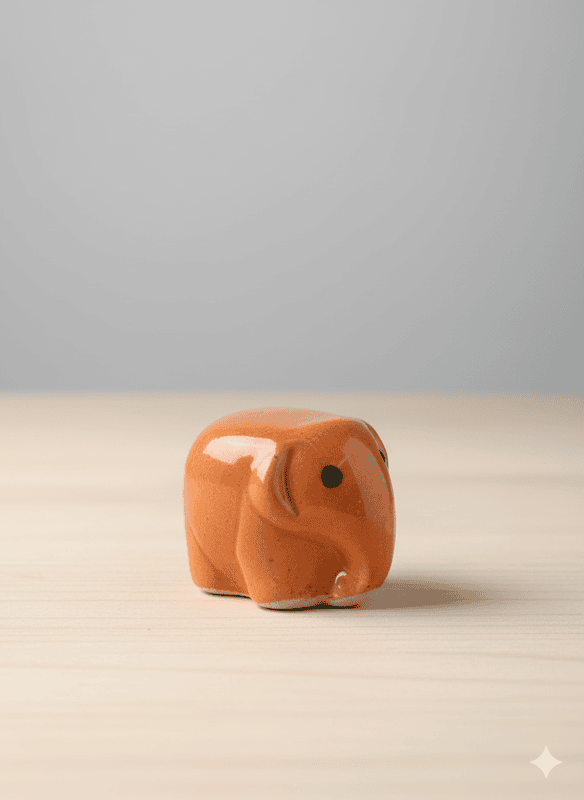 Infuse your space with a touch of warmth and good fortune with this delightful Miniature Ceramic Elephant Figurine. Expertly crafted from smooth ceramic, this tiny elephant features an appealing terra cotta-like color with a glossy finish and sweet, simple detailing for its eyes and trunk. Its compact size makes it an endearing accent piece, perfect for adding character to any corner of your home, garden, or office.