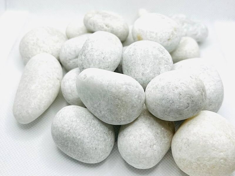Unpolished natural white pebbles, perfect for landscaping, gardening, aquariums, and decorative purposes.